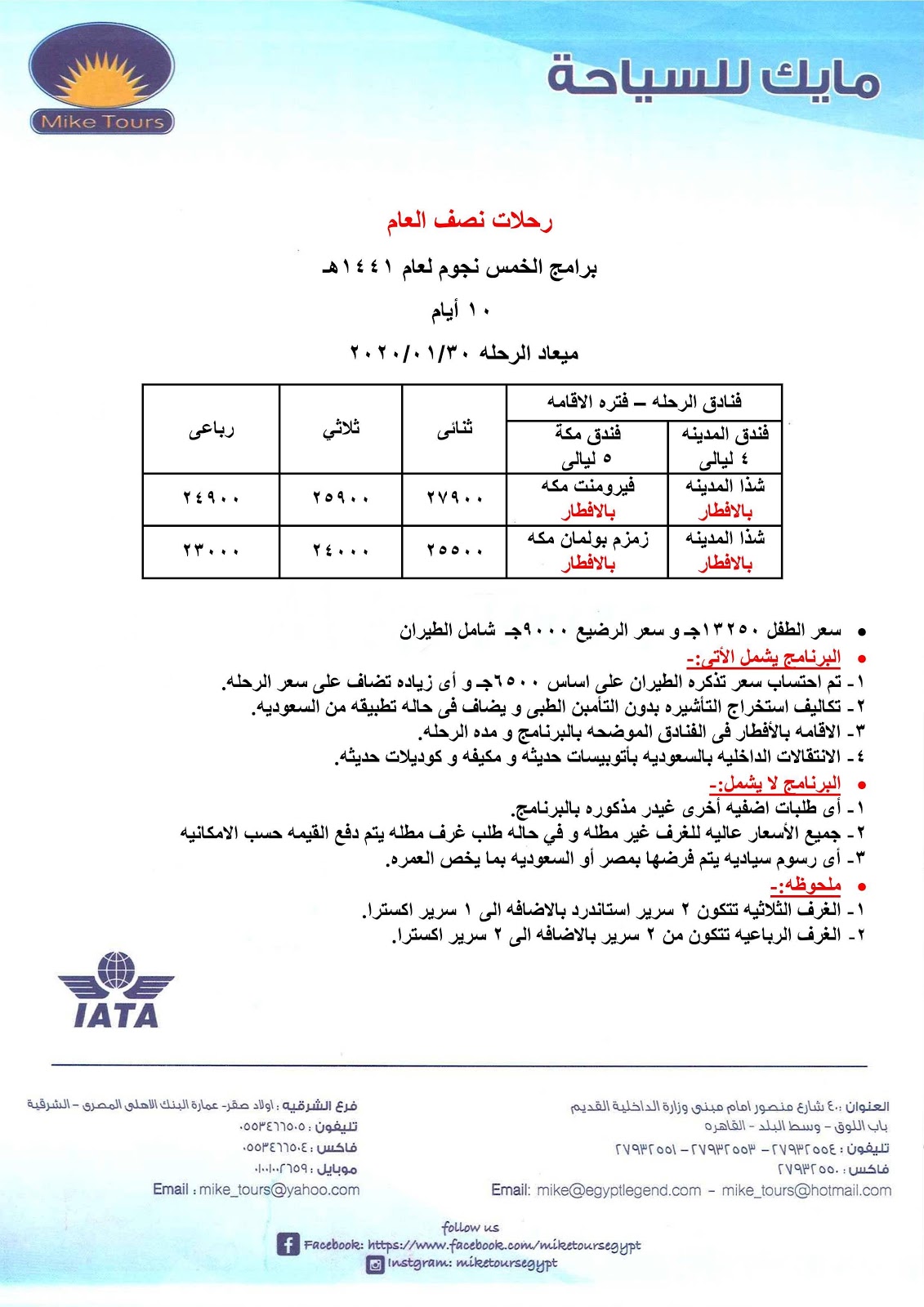 شركة مايك للسياحة حاصلة على رخصة وزارة السياحة رقم 2000 – يتخصص الاتحاد الدولي للنقل الجوي رقم 90-22222 في الجولات القادمة وسيتم توثيق جميع الحجوزات مع وثائق الشركة الأم. أنشئت على أساس التكنولوجيا عالية المستوى ، والغرض الرئيسي من هذا الموقع هو لخدمة الأفراد والمجموعات المسافرين من جميع أنحاء العالم ، الذين يزورون مصر وتزويدهم بجميع المعلومات اللازمة للمساعدة وتوجيههم مع جميع الخدمات داخل البلد .