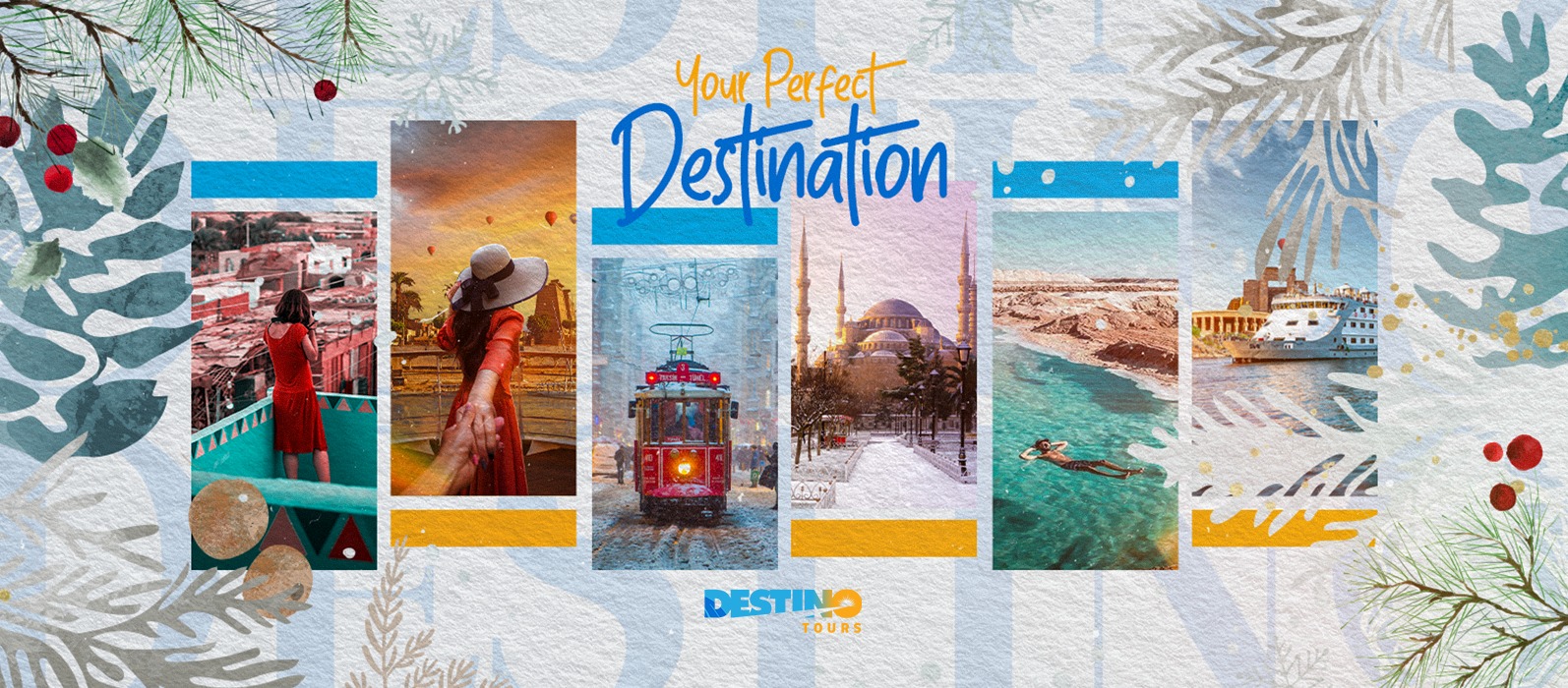 ديستينو تورز وكالة سفر إلكترونية متكاملة الخدمات، تأسست عام ١٩٨٩ في مصر، تقدم خدماتها في مجال السياحة والسفر، بالإضافة إلى شراكات مع الشركات. تُعدّ ديستينو تورز وجهة شاملة توفر جميع خدمات السفر. تتمتع مؤسستنا بخبرة واسعة في مجال السفر والسياحة، وتسعى جاهدة لتقديم أفضل الخدمات لعملائنا ومجتمعنا.